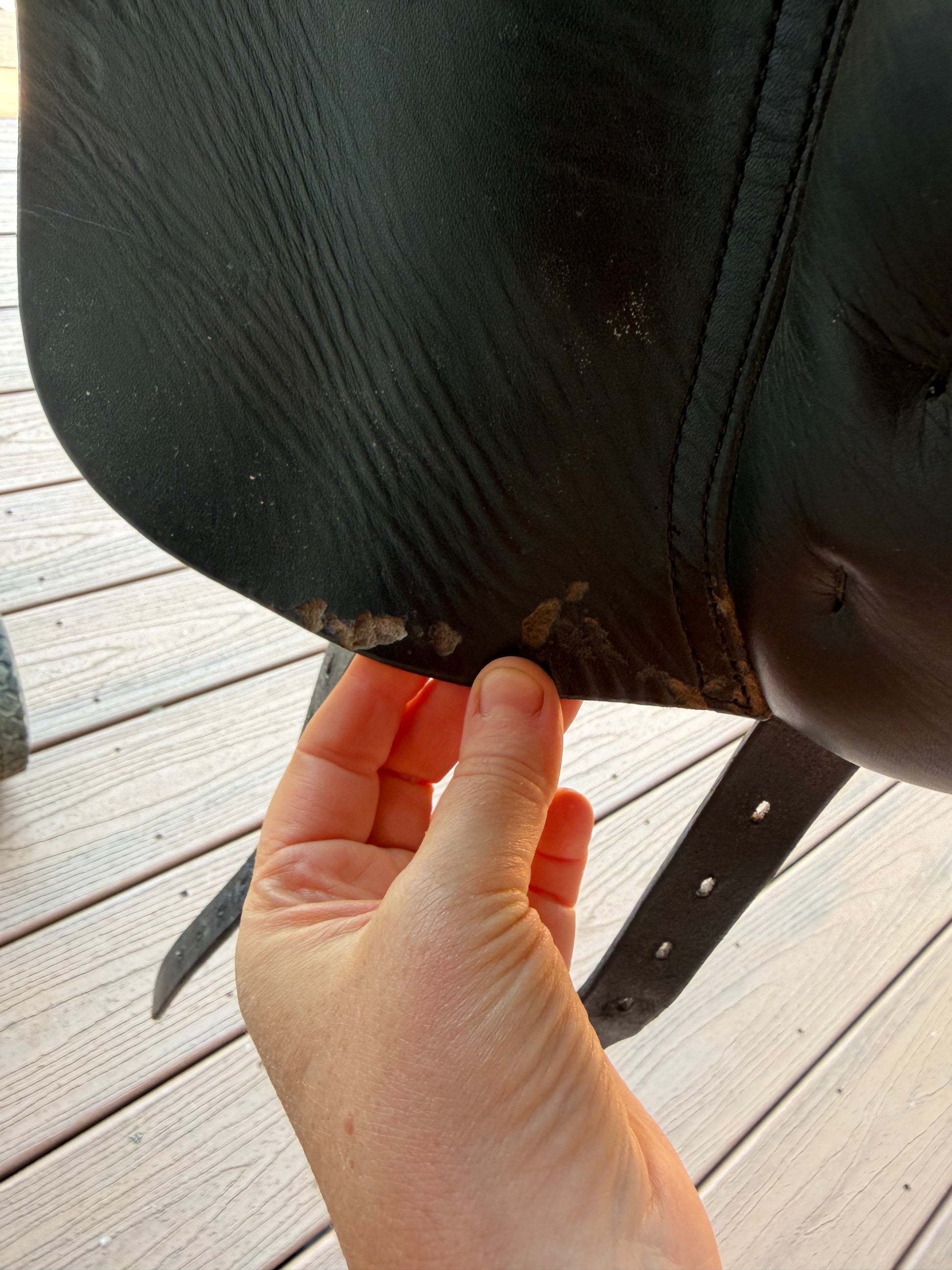 Hasn’t had much use, has been in storage a long time. But does have a couple mouse chews on girth point and inner flap